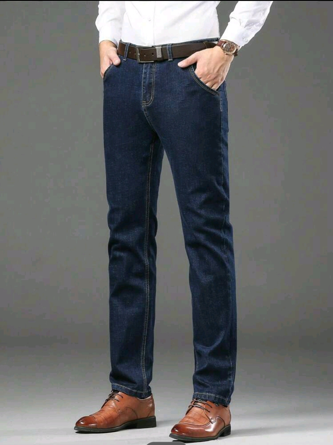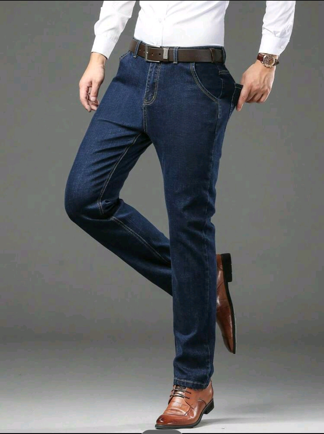 بنطلون جينز ذو قصة ممشوطة وممتدة بجيوب قطرية للاستعمال اليومي الرسمي والعادي