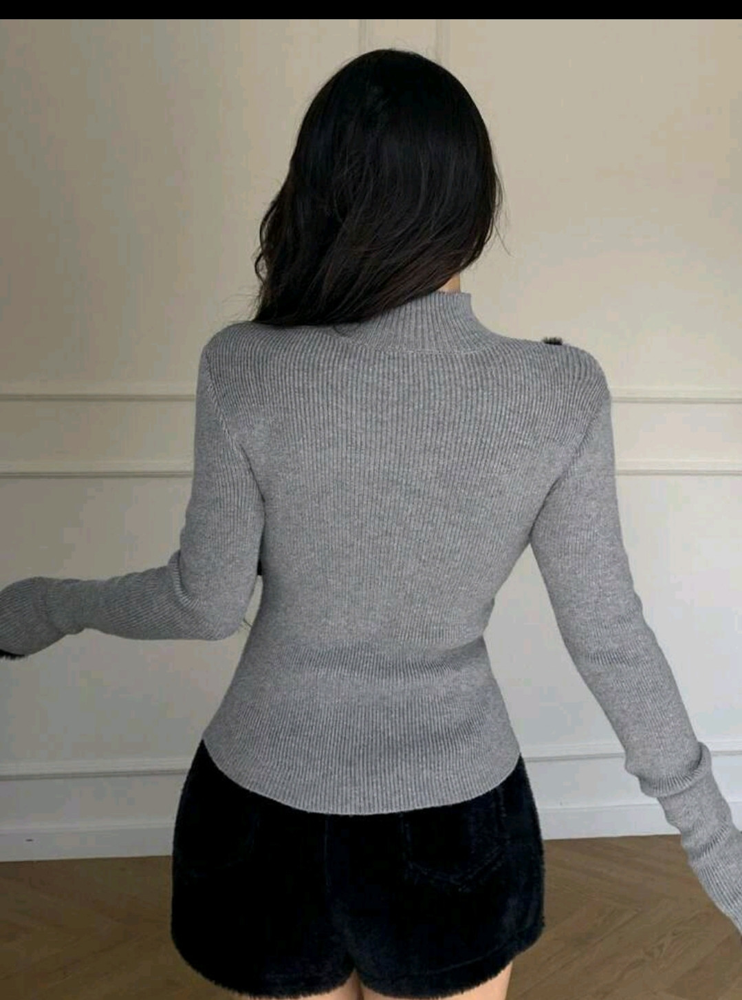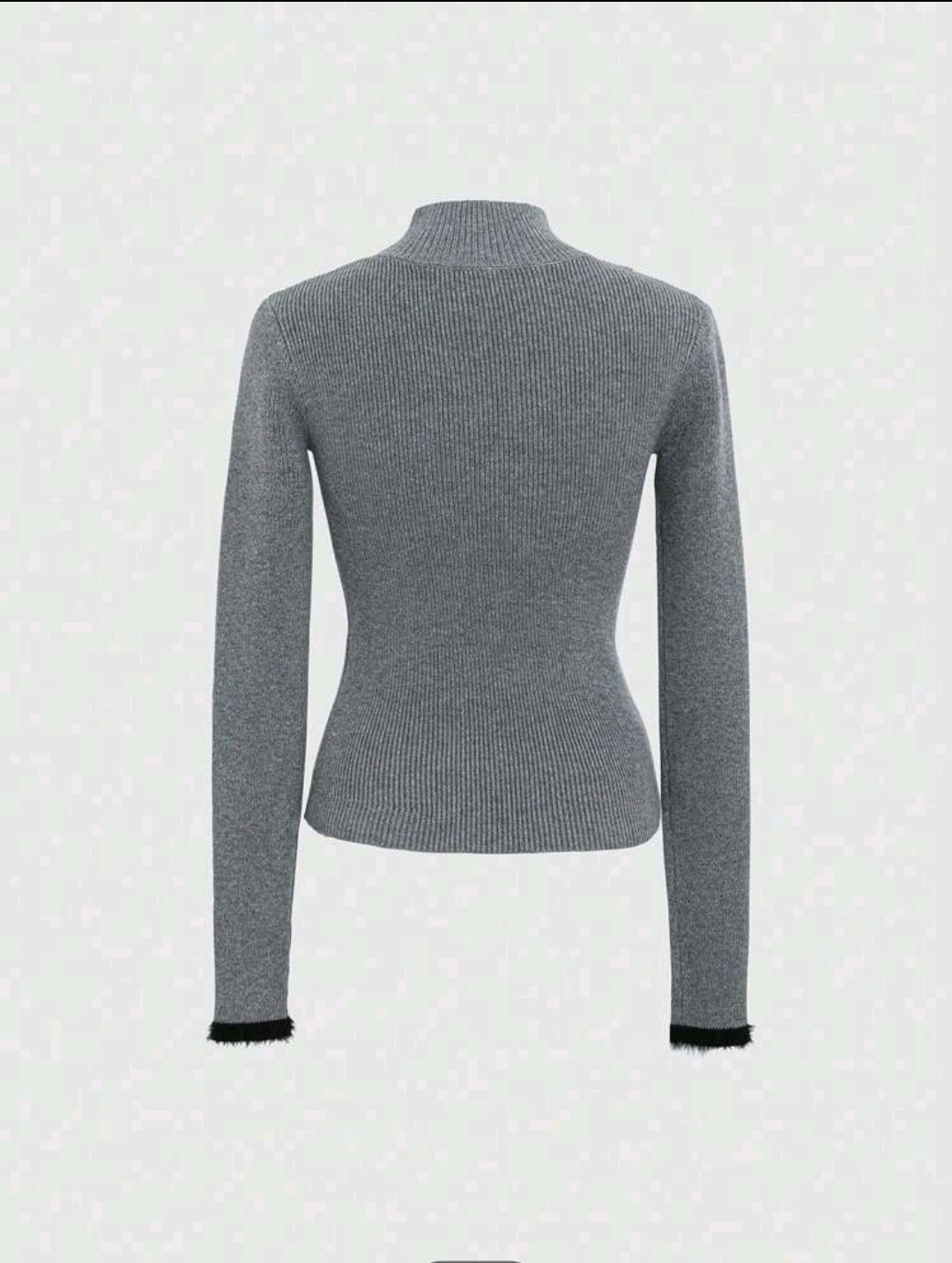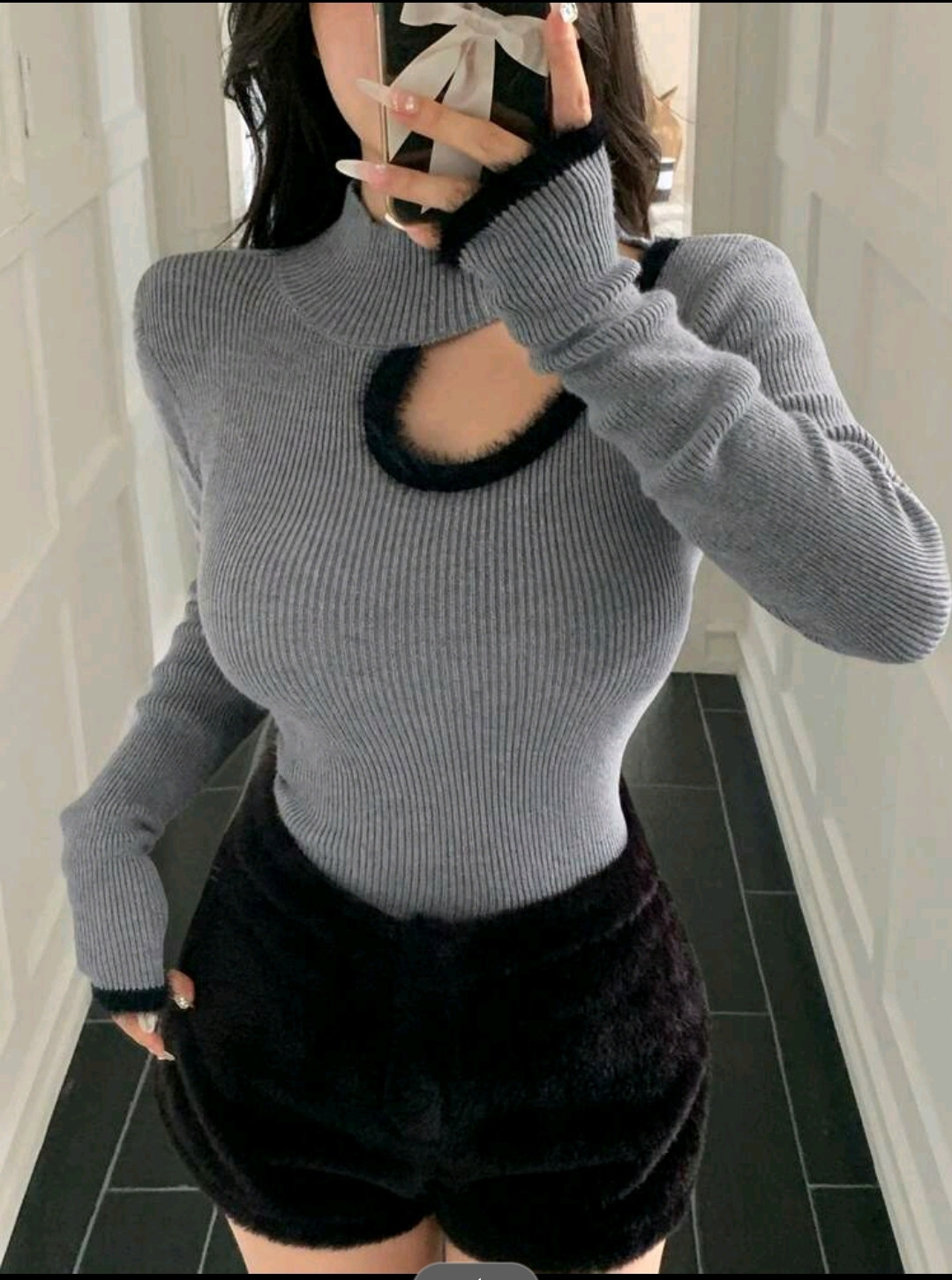 DAZY كنزة صوفية نسائية بلون متباين ومرقعة مع فتحات، بياقة عالية، أكمام طويلة، ملابس خريفية
